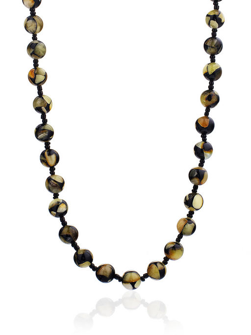 Эффектные бусы из янтарной мозаики Шары далматин чёрные