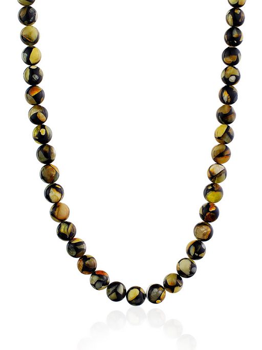 Яркие бусы из янтарной мозаики Шары далматин чёрные