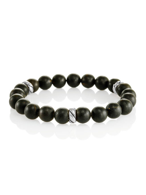 Эффектный браслет из формованных янтарных шаров чёрного цвета Куба