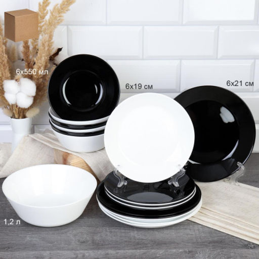 Столовый набор 19 предметов Черно-белый ЕВРО / NN19-0T-BW /уп 2/4/ малая тарелка