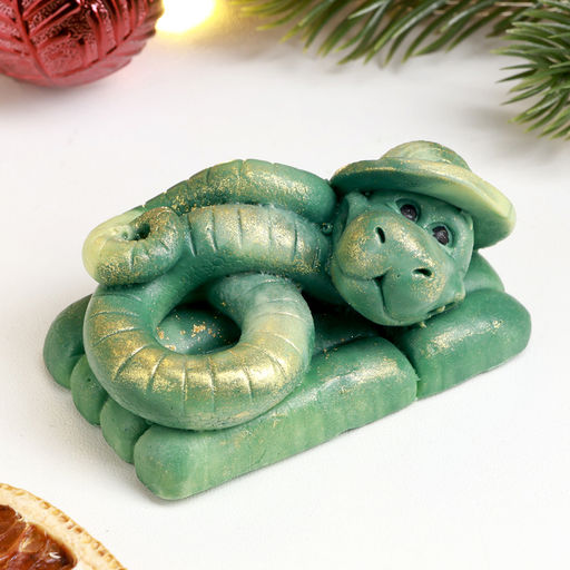 Цена за 2 шт. Фигурное мыло "Змея Турист" зеленый с позолотой