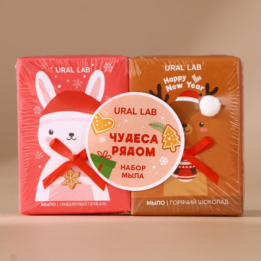 Подарочный набор новогодний URAL LAB Чудеса рядом: мыло для рук кусковое, 2х100 г