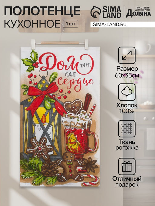 Полотенце "Доляна" Дом там где сердца 35х60см,100% хл 160 г/м2