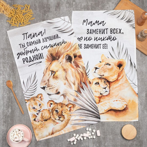 Набор кухонных полотенец Этель Семейство кошачьих 40х73см - 2 шт, 100% хлопок, вафля 160 г/м2