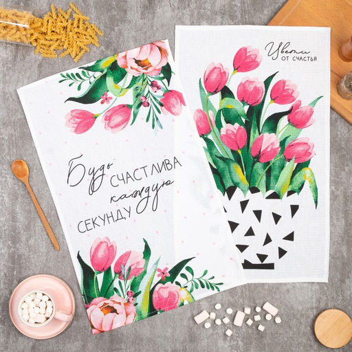Набор полотенец кухонный "Доляна" Будь счастлива 35х60см-2шт, 100% хлопок