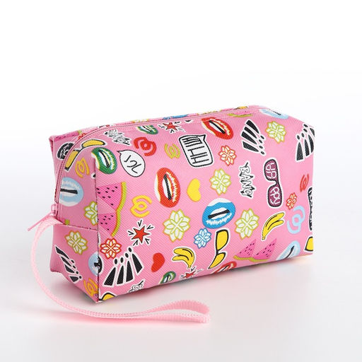 Косметичка на молнии, с ручкой, маленькая, с рисунком Kiss, розовая