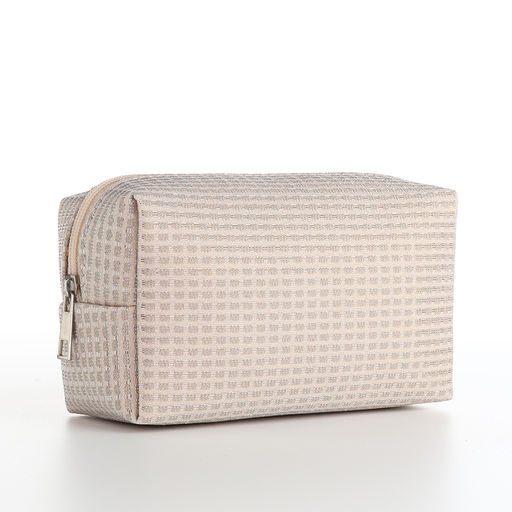 Косметичка на молнии женская, с подкладом, маленькая, бежевая