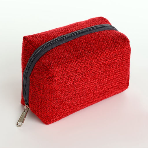 Косметичка женская на молнии, объёмная, маленькая, мягкая, красная