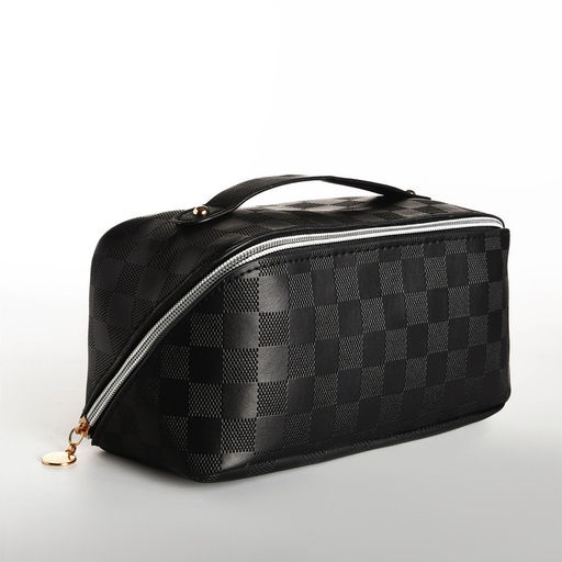 Косметичка-органайзер на молнии, с отделами, ручкой, Шахматная клетка, чёрная
