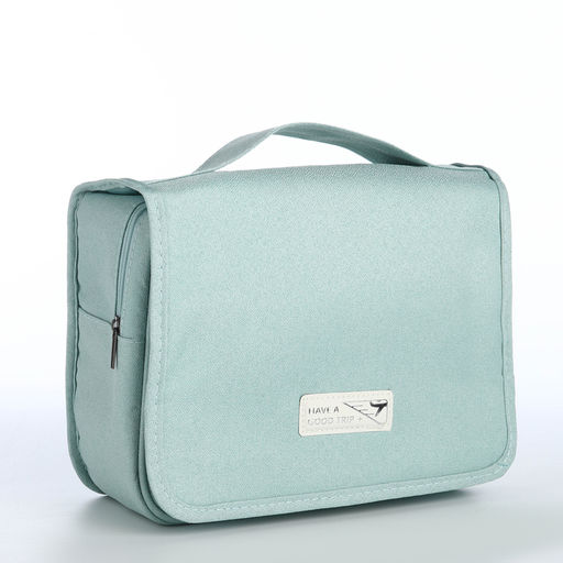 Косметичка-несессер дорожная на молнии, липучках, с крючком, ручкой, мятная
