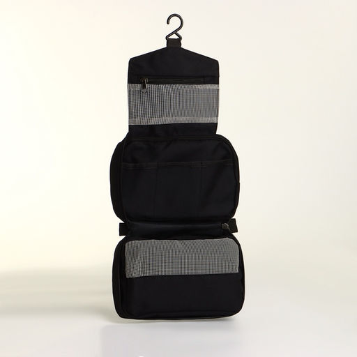 Косметичка-несессер дорожная на молнии, с ручкой, с крючком, чёрная