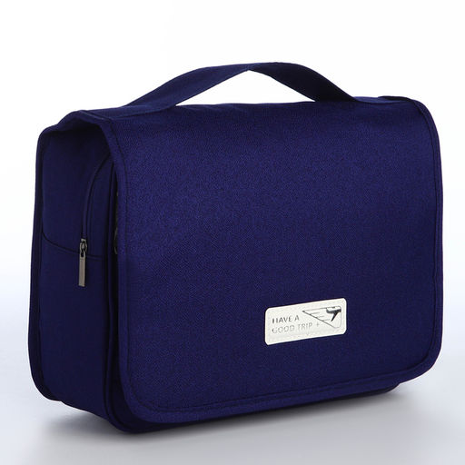Косметичка-несессер дорожная на молнии, липучках, с ручкой, крючком, синяя