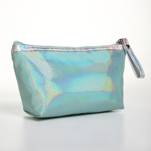 Косметичка простая на молнии, с ручкой, подкладом, голографическая, зелёная
