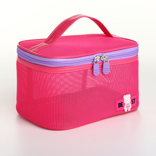 Косметичка-сундучок на молнии, с ручкой, сетка/малиновая