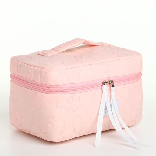 Косметичка-сундучок на молнии, с ручкой, с подкладом, розовая
