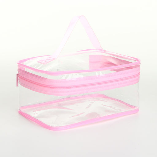 Косметичка-сундучок на молнии, маленькая, с ручкой, прозрачная, розовая