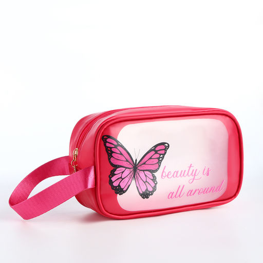 Косметичка на молнии для бассейна, с ручкой, с принтом Бабочка, малиновая