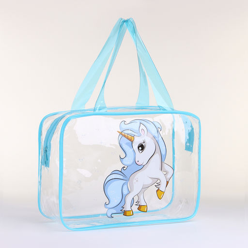 Косметичка-сумка на молнии для бассейна, с ручками, с принтом Единорог, голубая