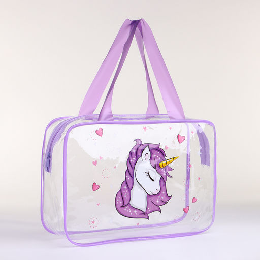 Косметичка-сумка на молнии для бассейна, с ручками, с принтом Единорог, сиреневая