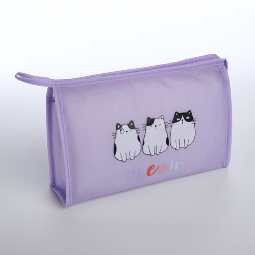 Косметичка на молнии треугольная с рисунком Meow, сиреневая