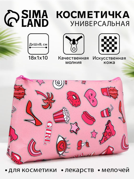 Цена за 2 шт. Косметичка-пенал на молнии, плоская, маленькая, с рисунком Girl, розовая