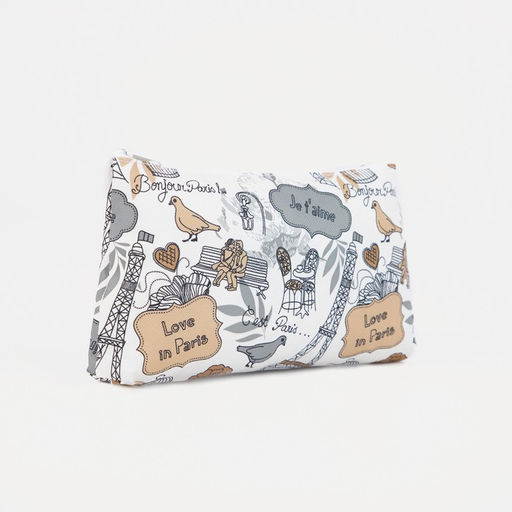 Цена за 3 шт. Косметичка-пенал на молнии, плоская, маленькая, с рисунком Париж, бежевая/серая