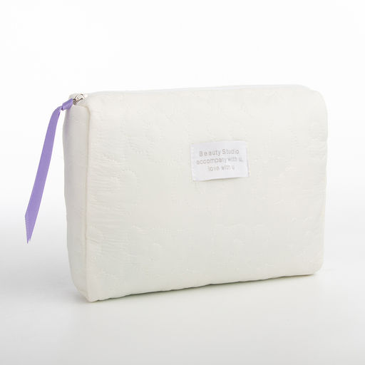Косметичка на молнии простая, со стёжкой Цветы, белая