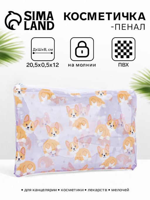 Цена за 3 шт. Косметичка-пенал на молнии, с рисунком Корги, сиреневый