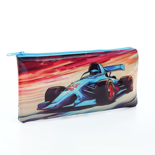 Косметичка-пенал на молнии, с рисунком Авто, голубая/оранжевая