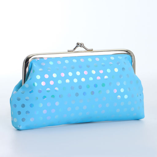 Косметичка женская на фермуаре, маленькая, с принтом Перламутровый горох, голубая