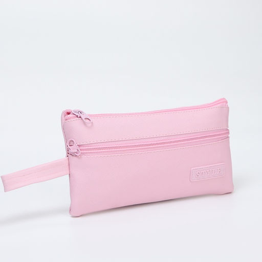 Косметичка-пенал на молнии, плоская, с карманом, розовая