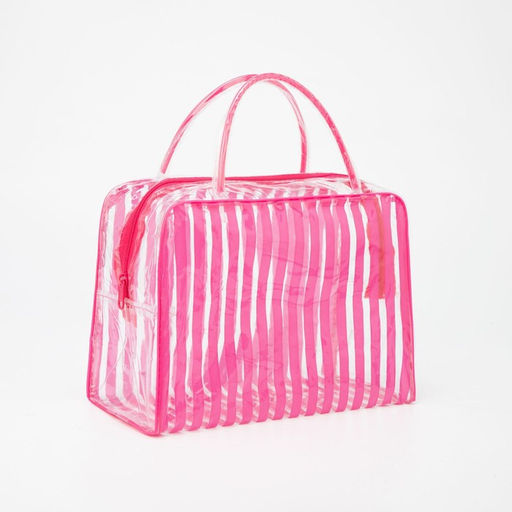 Цена за 2 шт. Косметичка-сумка на молнии для бассейна, с ручками, с принтом Полоски, розовая