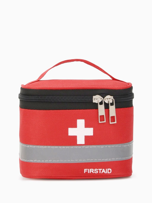 Косметичка-аптечка на молнии, на подкладке, с ручкой, с принтом Firstaid, красная