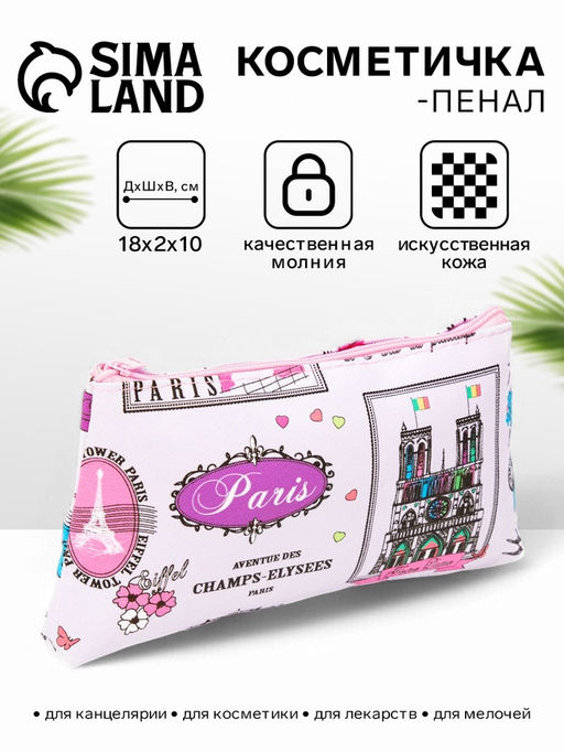 Цена за 2 шт. Косметичка-пенал на молнии, плоская, с рисунком Нотр-Дам, розовая