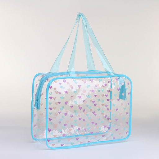 Косметичка-сумка на молнии для бассейна, с ручками, с принтом Сердечки, голубая