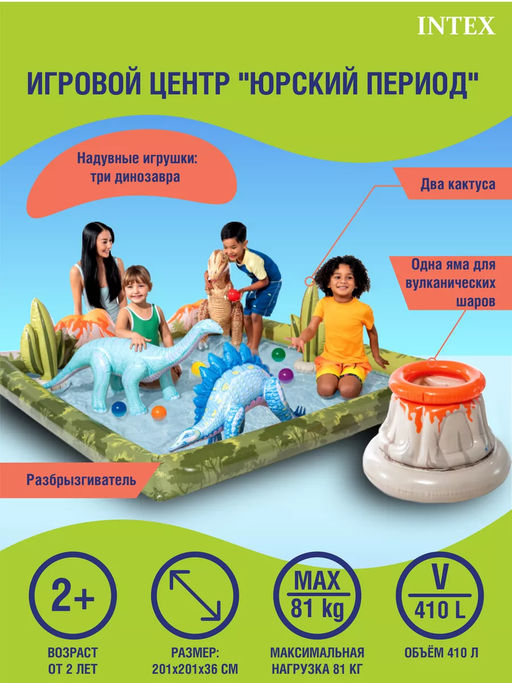 Игровой центр надувной "Дино-парк" 201х201х36 см