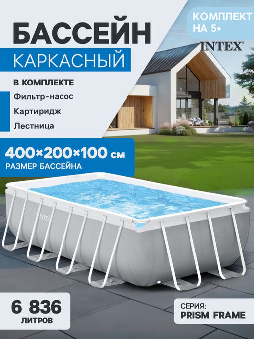 -18% Бассейн на опорах 400х200х100см (фильтр-насос 2,0 м3/ч, лестница), от 6-ти лет INTEX