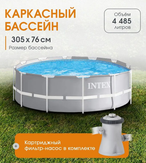 -22% Бассейн Prism Frame 305х76см + фильтр-насос 1,25 м3/ч, от 6-ти лет INTEX