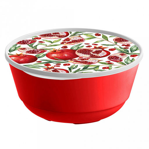 Миска пластмассовая "Bergamo" 2л, д21см, h10см, красный, с крышкой, с декором (Россия)