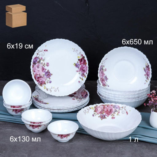 Столовый набор 19 предметов с глубокими розетками / 19/757840/XN (7065) /уп 2/C / серия Розовая композиция