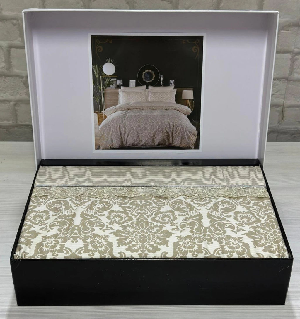 КПБ EFOR COTTONI с гипюром "орнамент" евро (капучино)