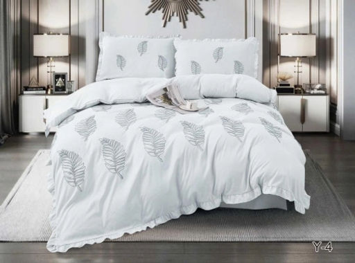 КПБ EFOR SATIN с одеялом с вышивкой "листок" светло-серый евро