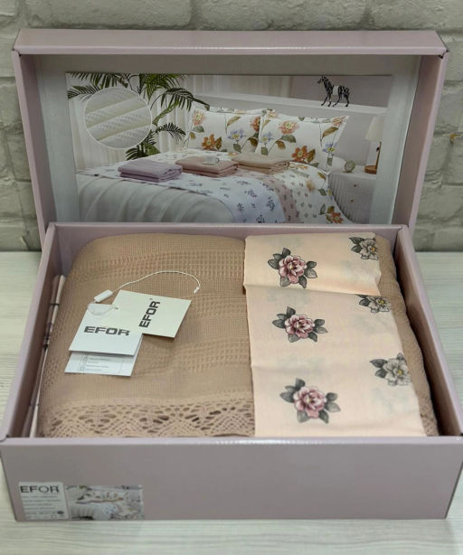 КПБ EFOR COTTONI с вафельным покрывалом 220*240, капучино (АС-04)