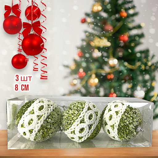 Шары на ёлку с украшениями 3шт, диаметр шара 80мм