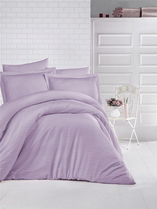КПБ Clasy Satin Gizgili (DUZ RENK LILA) евро
