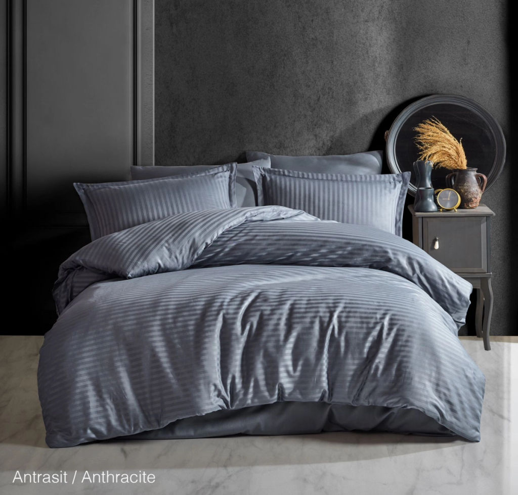 КПБ Clasy Satin Gizgili (DUZ RENK ANTRASIT) евро