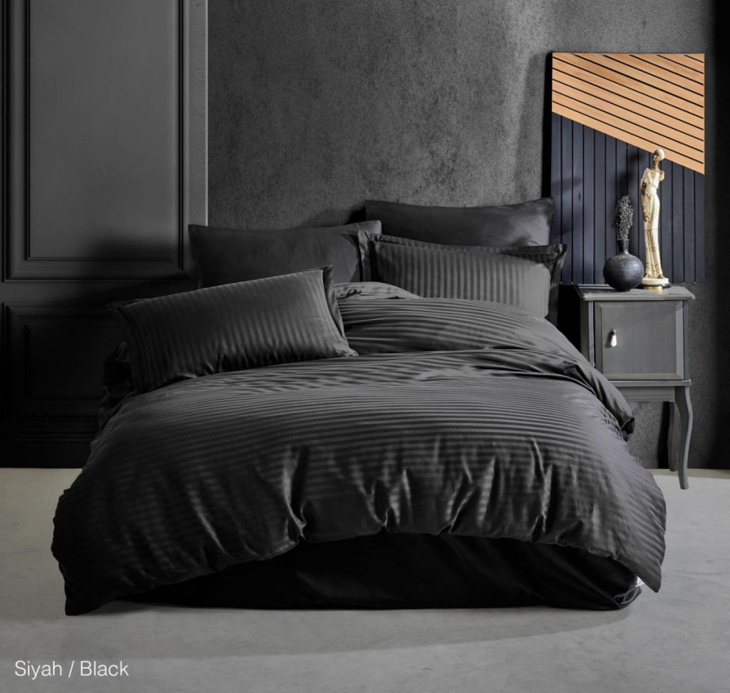 КПБ Clasy Satin Gizgili (DUZ RENK SIYAH) евро