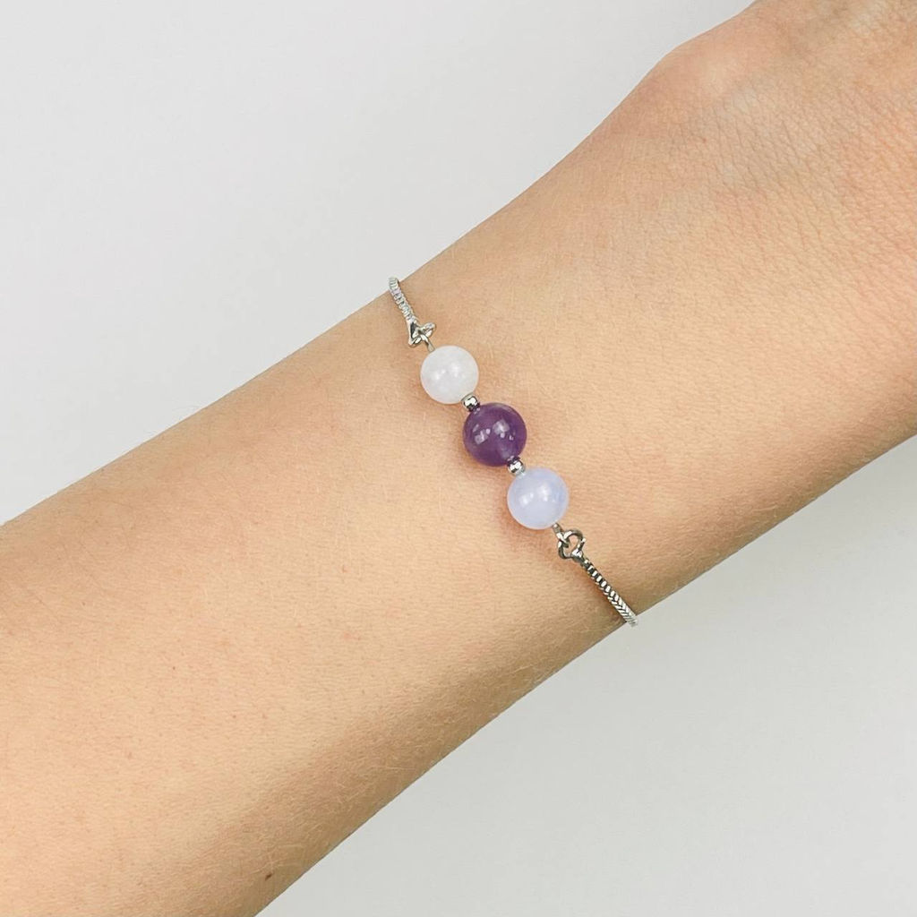 Браслет регулируемый для "Тельца" из Агата, Аметиста и Лунного камня