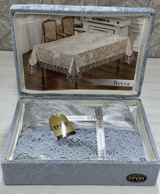 Скатерть EFOR BEYZA 160*220 в сундучке прямоугольник серый GRI