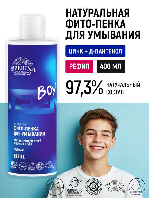 Натуральная фито-пенка для умывания против прыщей, угрей и чёрных точек с цинком